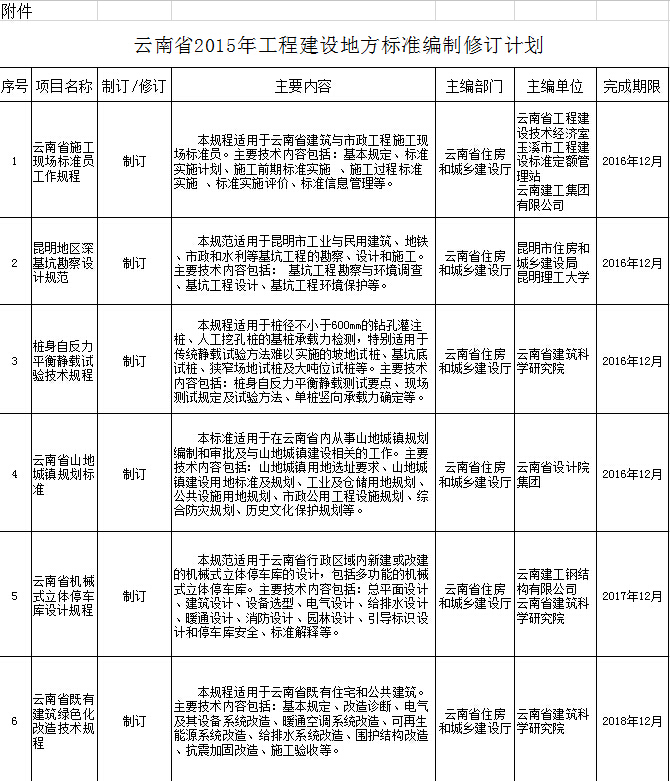 附件:《2015年云南省工程建設(shè)地方標(biāo)準(zhǔn)編制修訂計(jì)劃》